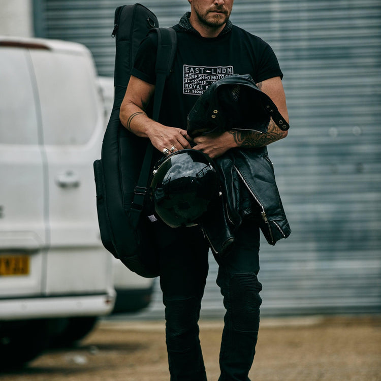 Before technology wiped out the best gig in town, Motorcycle Couriers used to own London’s streets. On every corner you would see a city-hardened rider, bag slung across their back, ready to carve traffic. The BSMC x RE Messenger bag is a throwback to the simple tarp bags those couriers favoured, with a pocket for everything, a removable waist strap and a subtle BSMC x RE patch.
