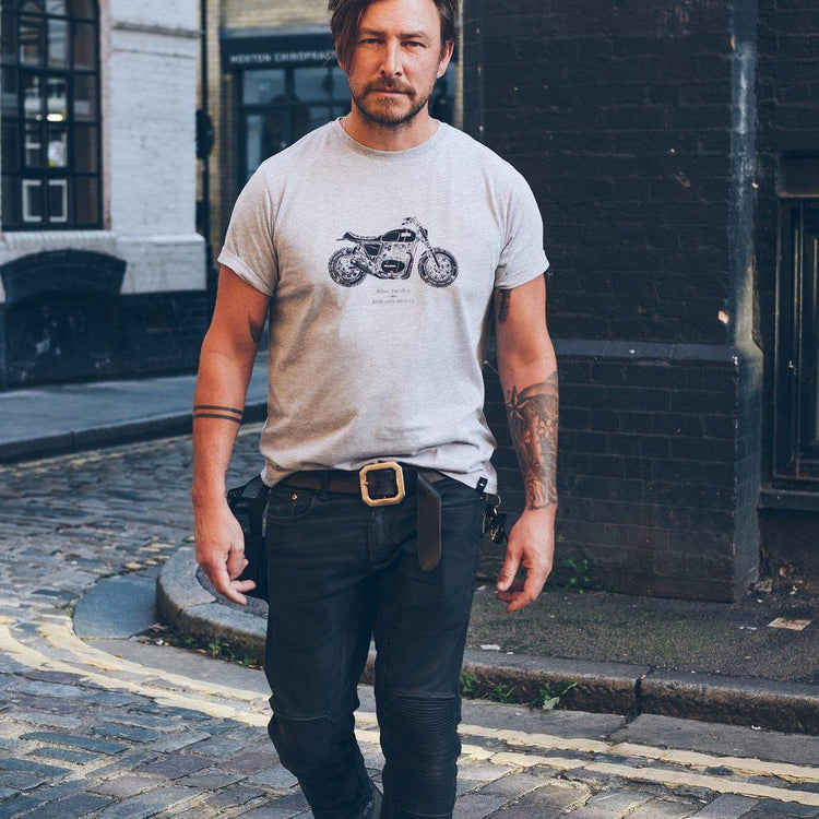 Front or side aspect, the BSMC x Royal Enfield 650 Interceptor has a presence that is hard to mistake. Inspired by the blueprints used in the machine’s original design process, the Aspect T-shirt features a hand drawn chest print of the bike that launched our collaboration.